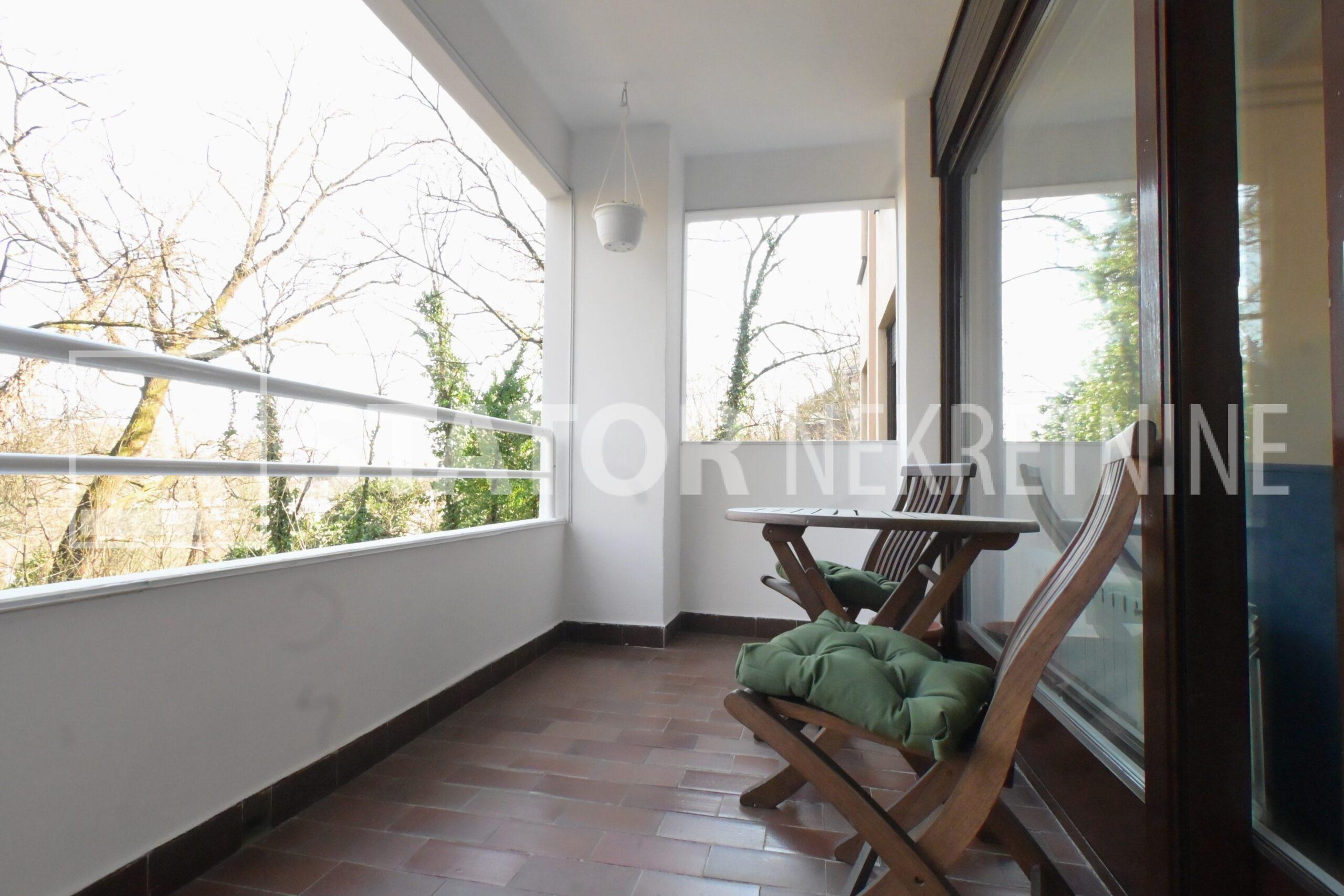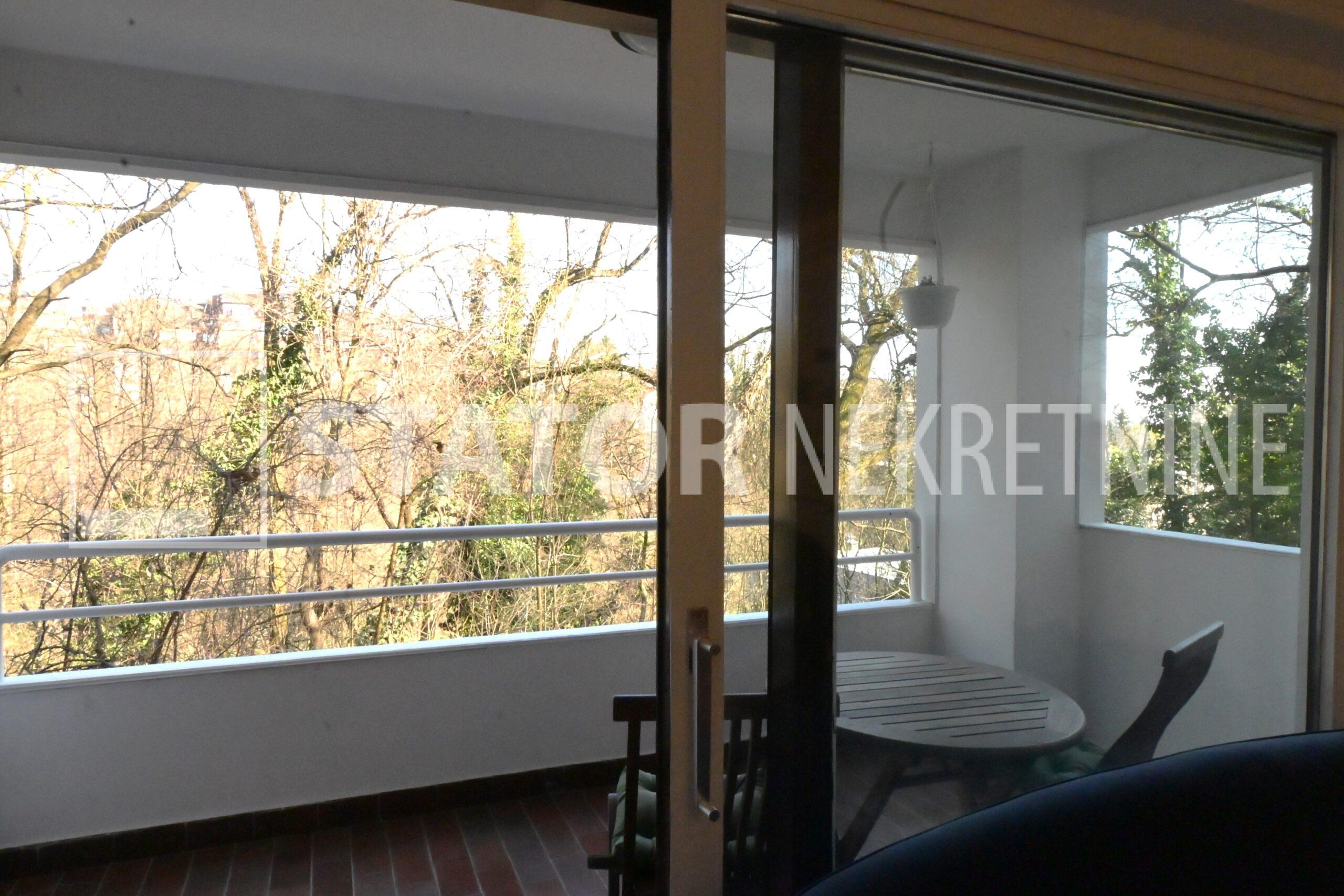 Iznajmljuje se dvosobni stan u ul. Grada Gualda Tadino, ( Kajfešov brijeg) s pogledom na šumu. Sastoji se od ulaznog hodnika, ravno od ulaza dnevne sobe sa izlaskom na balkon s kojeg se pruža prekrasan pogled, lijevo od ulaza kuhinje sa prostorom za blagovanje i spavaće sobe koja također ima pogled na šumu. Desno od ulaza je kupaonica sa WC – om. Stan je u potpunosti namješten; dnevna soba sa dvosjedom i trosjedom, također i velikim garderobnim ormarom. Opremljena kuhinji sa hladnjakom i škrinjom za zamrzavanje, peć sa pećnicom, stol za blagovanje i stolice, spavaća soba sa krevetom, na balkonu stol i stolice, novouređena kupaonica u kojoj je perilica rublja. Grijanje etažno, plinsko. Ispred zgrade je besplatan parking. S obzirom na položaj zgrade kaskadne konstrukcije stan je na etaži – 3 a s dvorišne strane visina 1. kata. ODLIČAN, INTERESANTAN STAN U ZGRADI UREDNOG ULAZA OKRUŽEN PRIRODOM!!