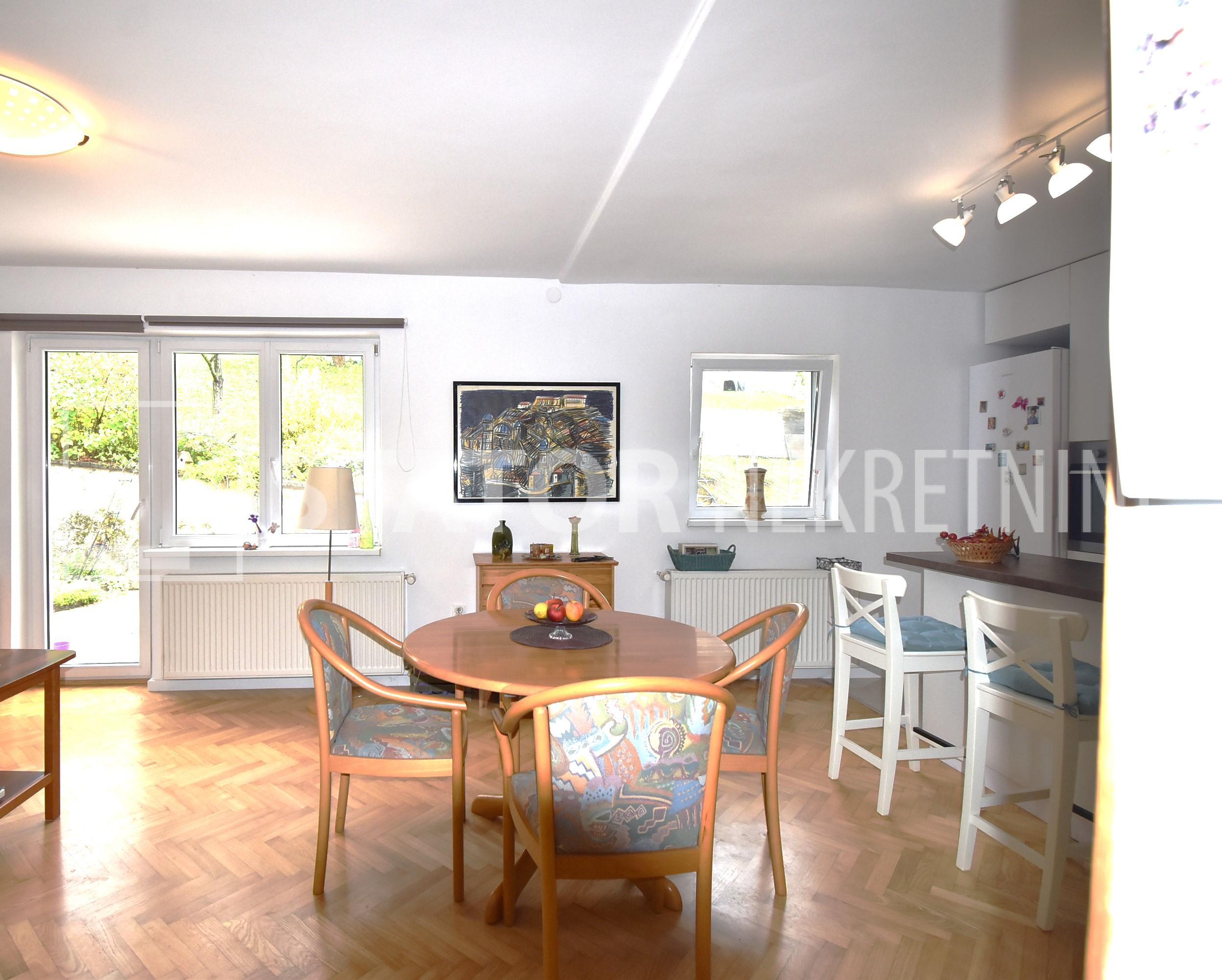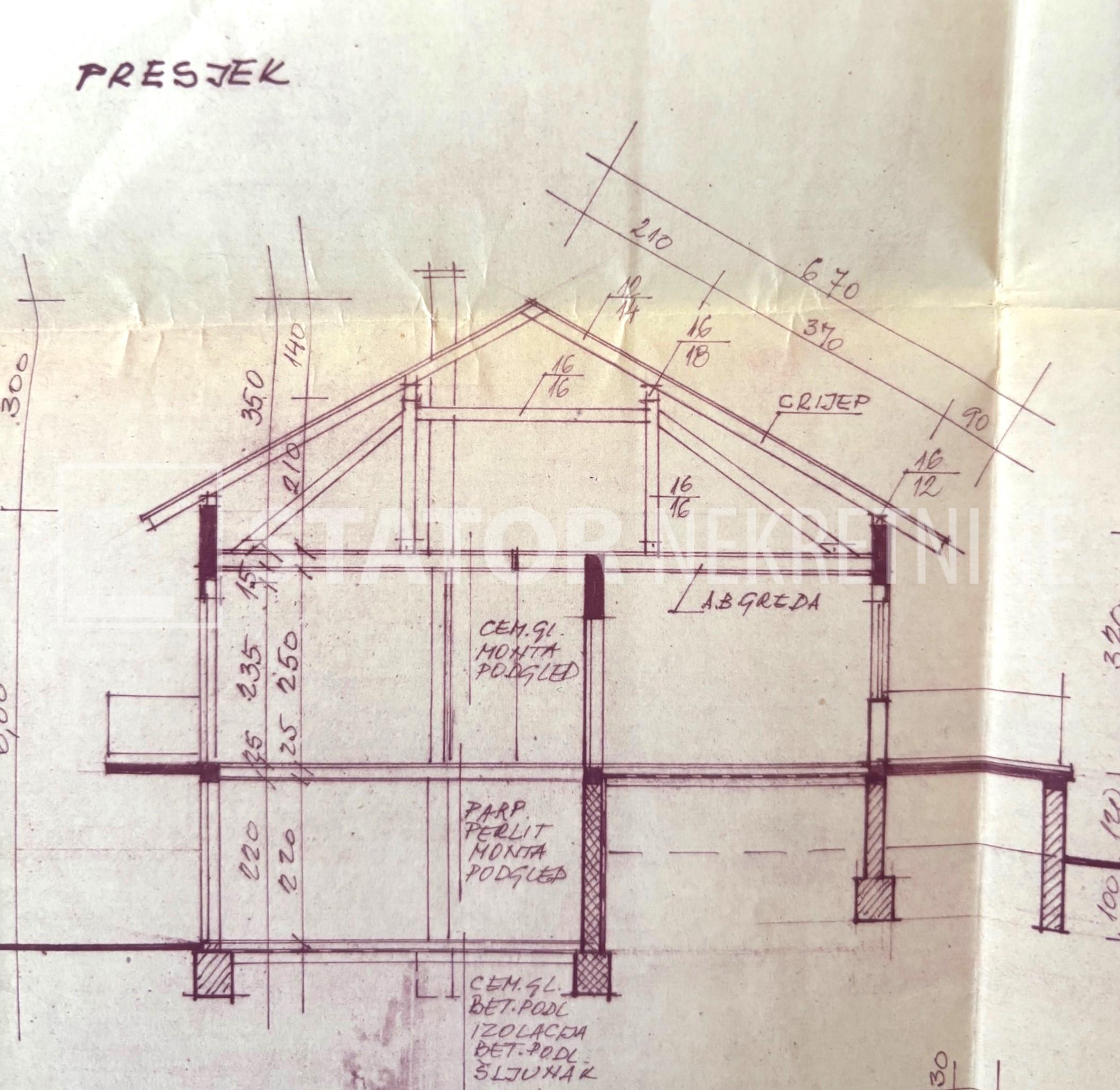 JABLANOVEC, na samom rubu Parka prirode prodaje se uredno održavana kuća novije gradnje. Sastoji se od ulaznog hodnika, na desno dvije spavaće sobe, ravno od ulaza kupaonice, lijevo od ulaza dnevne sobe i kuhinje sa izlaskom na uređeno dvorište. U podrumu kuće je garaža, prostor za razne namjene ( hobbyraum, radionica, vinoteka i sl..) i jedna manja prostorija ili ostava. Iznad cijele kuće je uredan tavan koji je moguć pretvoriti u dodatni stambeni prostor. Kući pripada i parcela od 1 500 m2 na kojoj je i vrtna kućica, legalno sagrađena. Grijanje je etažno, plinsko, u dnevnom boravku kamin na drva, u funkciji. Također i prostorije u podrumu su grijane. Na kući je termo fasada 6cm. Ugodna kuća sa pripadajućim prostorom i zemjištem u mirnom okruženju, PREPORUKA!! Moguća zamjena za trosobni stan u Zagrebu, Donje Svetice, Volovčica…