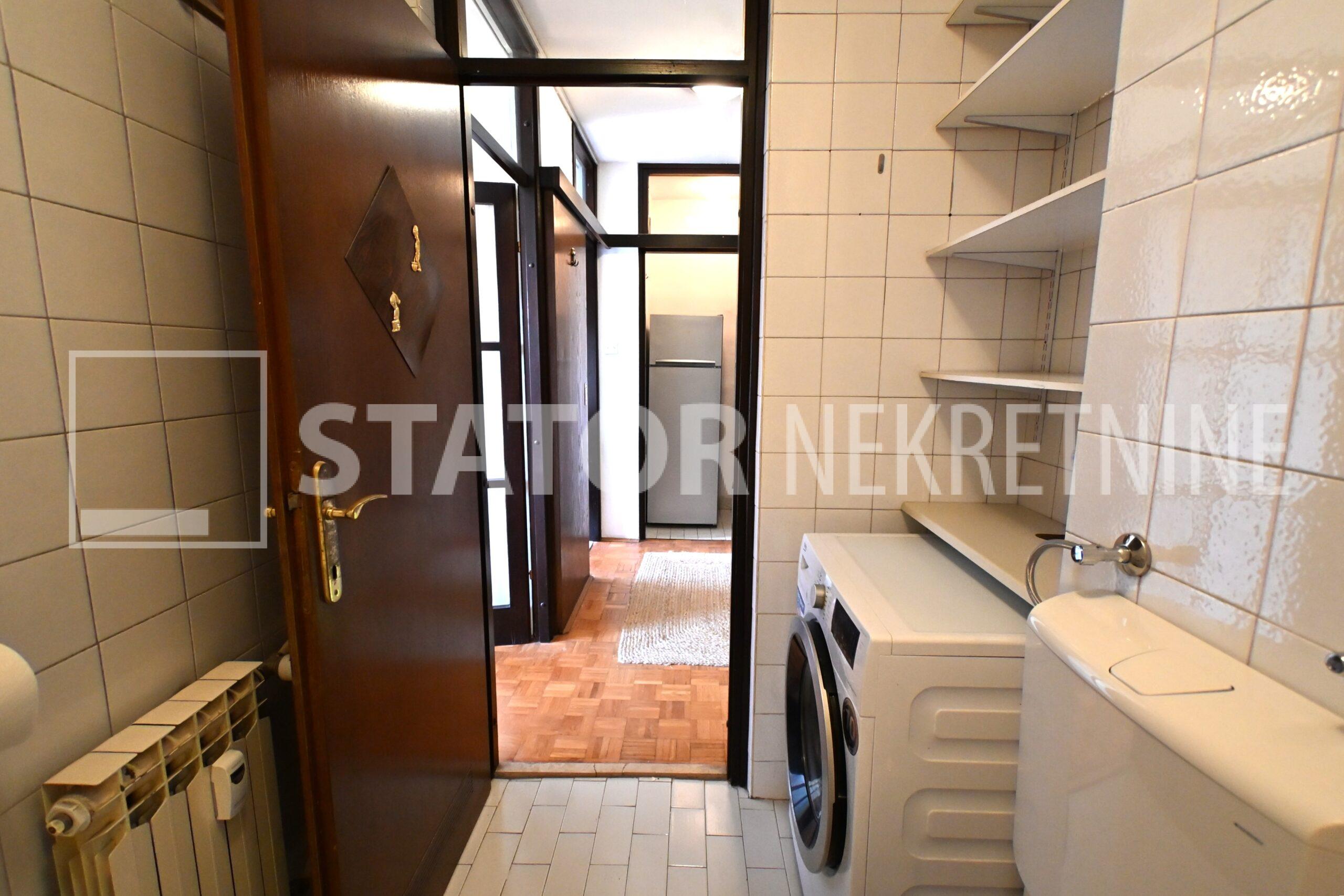 JARUN, Hinka Würtha, iznajmljuje se jednosobni stan nedaleko jezera. Nalazi se na drugom katu manje stambene zgrade. Sastoji se od ulaznog hodnika u kojem su ugradbeni ormari. Ravno od ulaza je dnevno spavaća soba i kuhinja koja ima izlaz na balkon. Lijevo od ulaza je kupaonica. Stan je uredno održavan i u potpunosti namješten. Grijanje je na gradsku toplanu, klima. ODLIČAN, SIMPATIČAN STAN SA POGLEDOM NA JEZERO. BLIZINA MARKETA I NEKOLIKO MINUTA DO TRAMVAJSKE STANICE!!!! PREPORUKA!!
