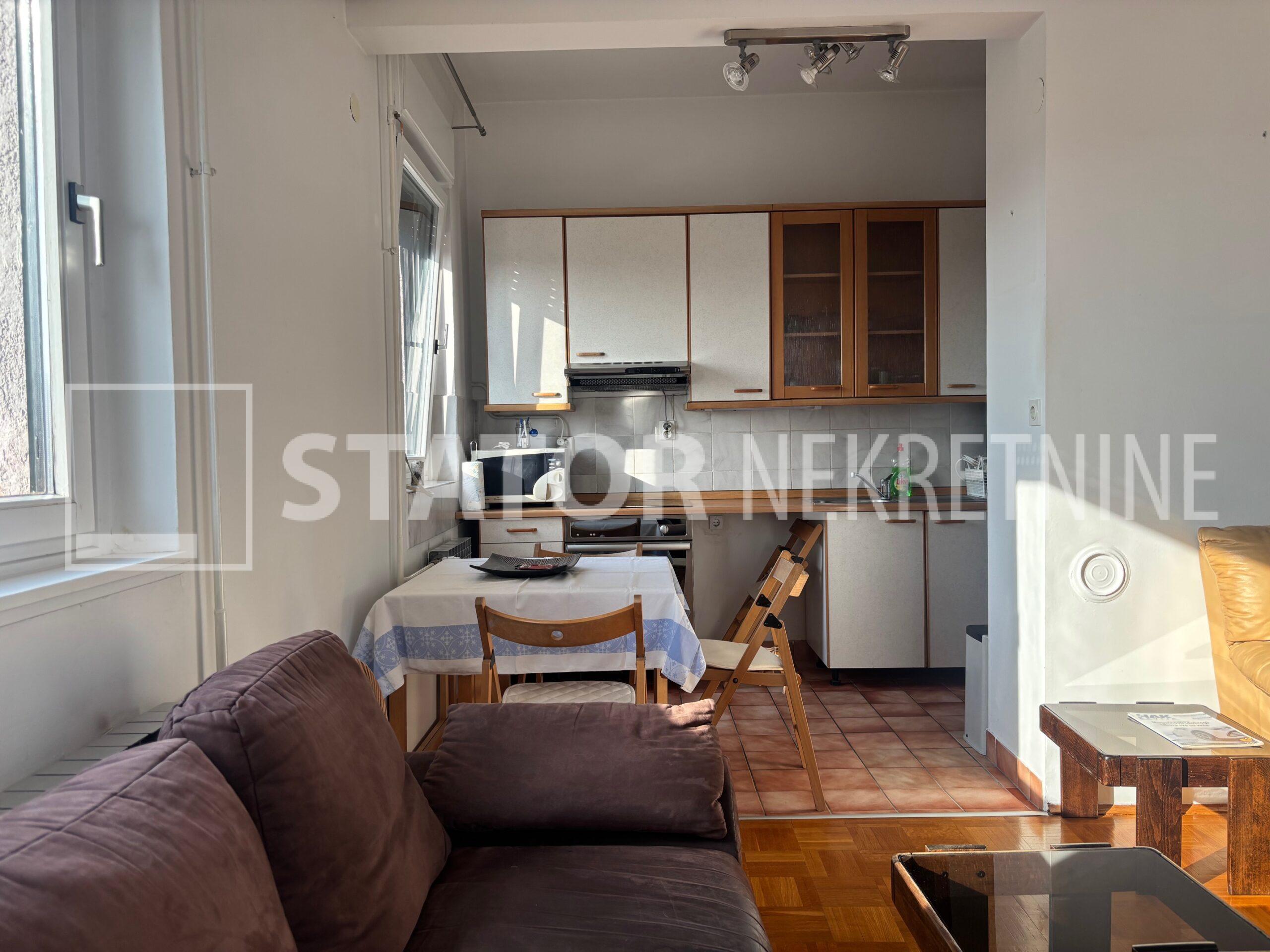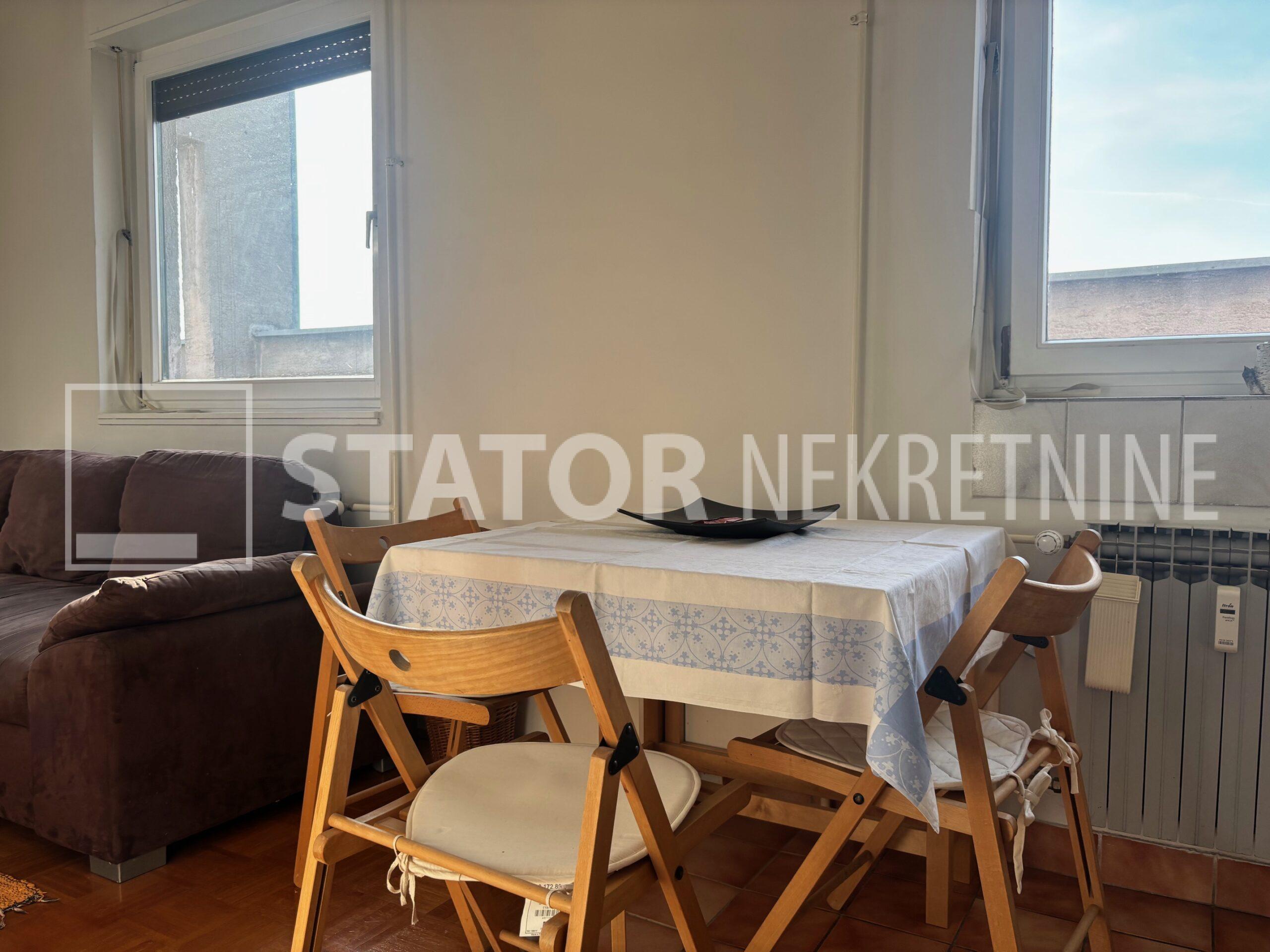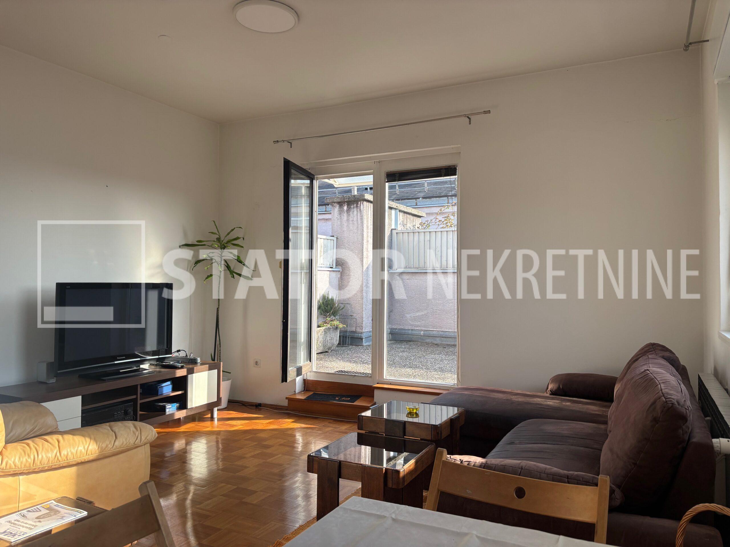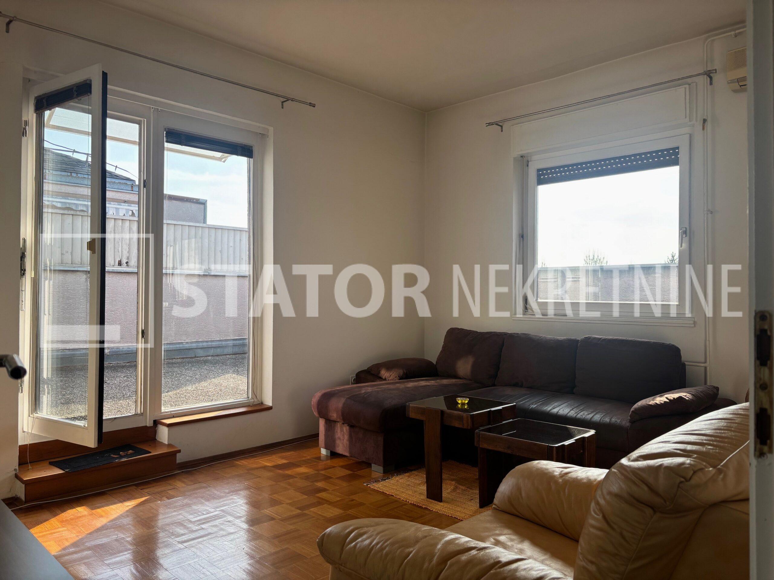 MALEŠNICA, prodaje se trosobni stan odličnog tlocrta na 4. katu zgrade bez lifta. Sastoji se od ulaznog hodnika u L, na lijevo spavaće sobe i dnevnog boravka koji ima izlaz na terasu ( 20m2) i loggu koja se proteže cijelom dužinom stana. Ravno od ulaza je kuhinja u koju se također može ući i iz dnevne sobe. Desno od ulaza je kupaonica i druga spavaća soba. Velika terasa i logga nemaju pogled na ostale stanove što ovom stanu daje privatnost i mir. Stan je uredno održavan i prodaje se sa namještajem. Iznad stana je kosi krov, visina stropa je 290cm. U podrumu je pripadajuća ostava. Grijanje na toplanu, jedna klimatska jedinica je u dnevnoj a duga u spavaćoj sobi. U neposrednoj blizini su marketi, autobusna stanica, na nekoliko minuta i željeznička stanica.