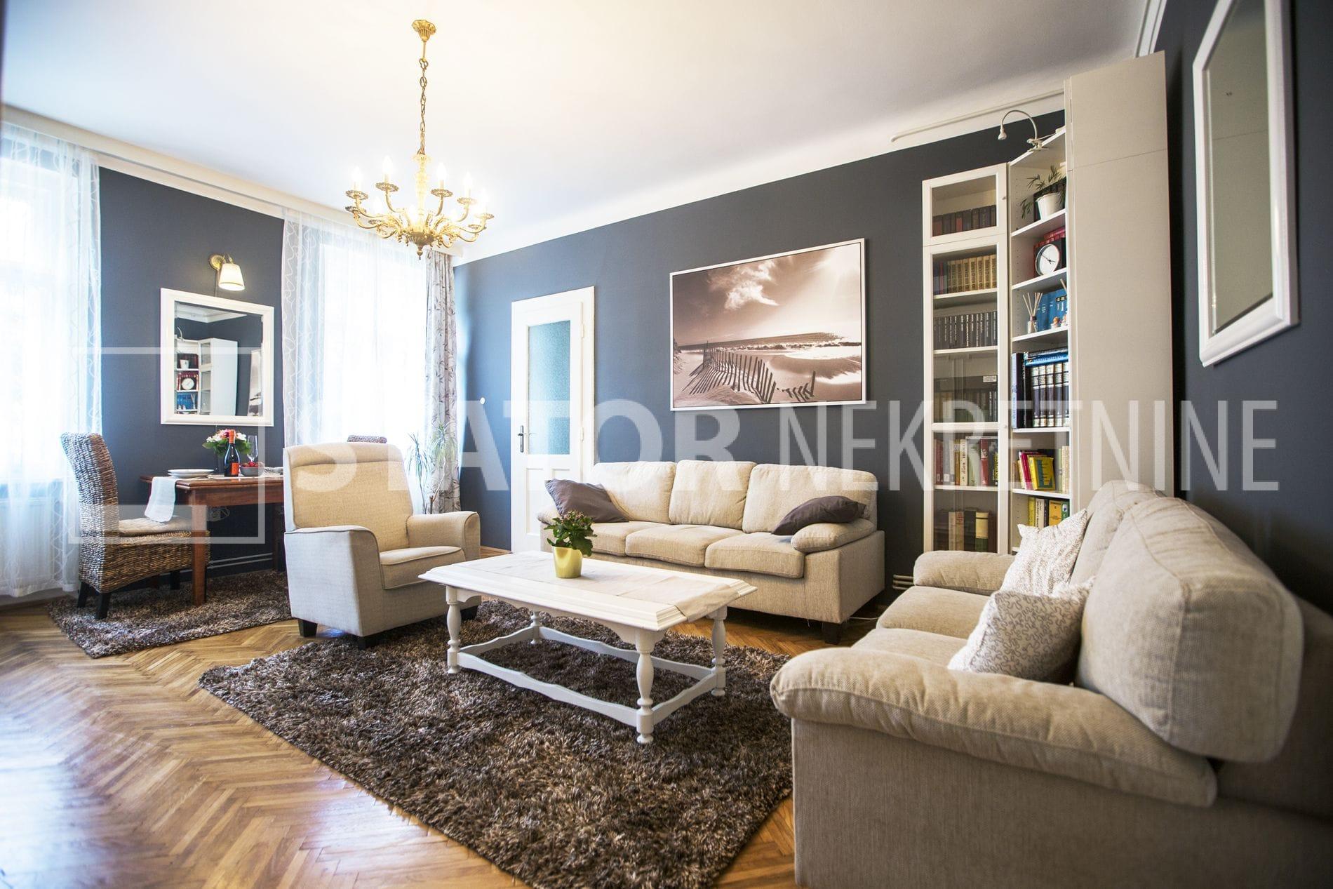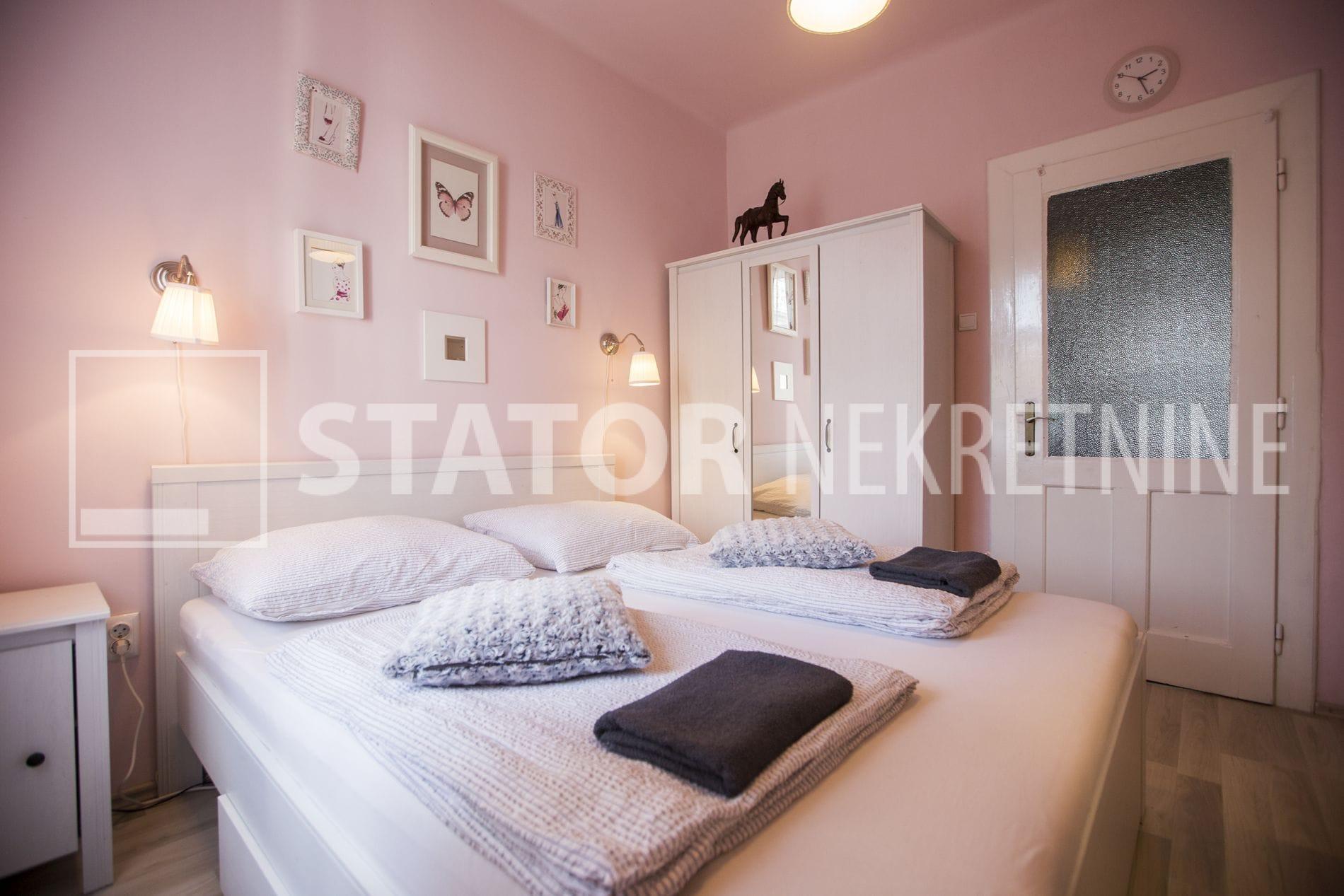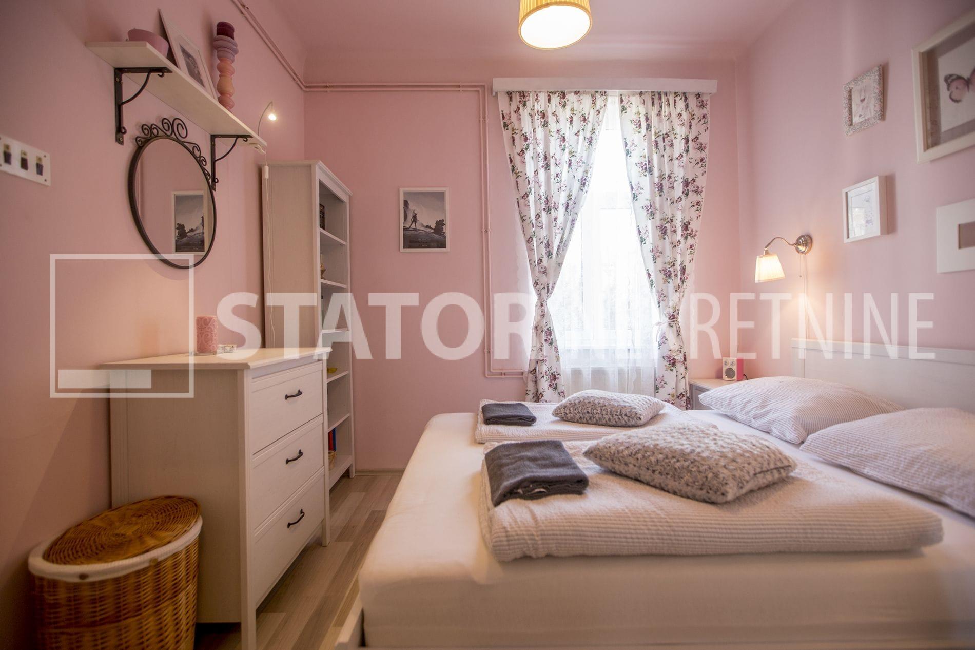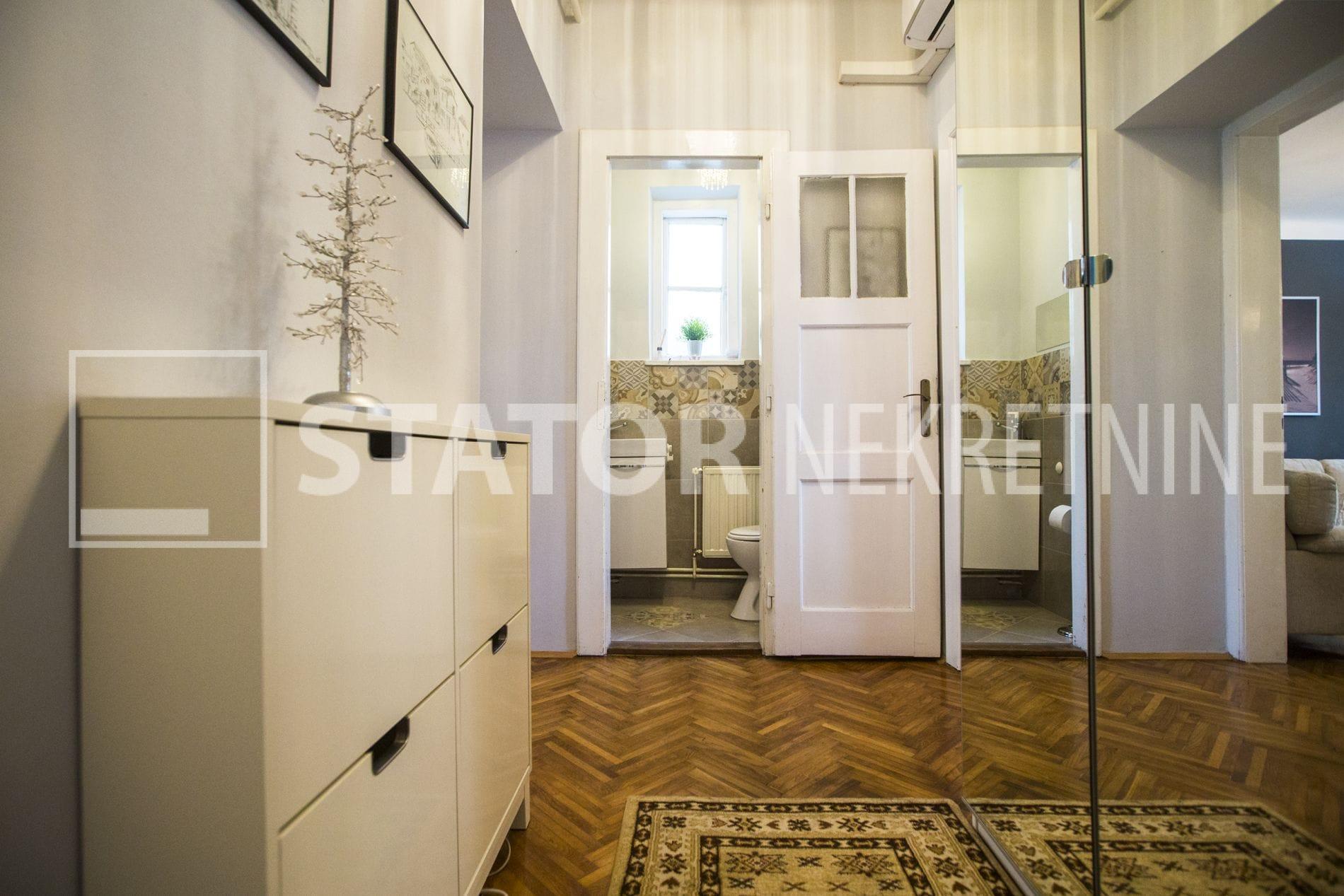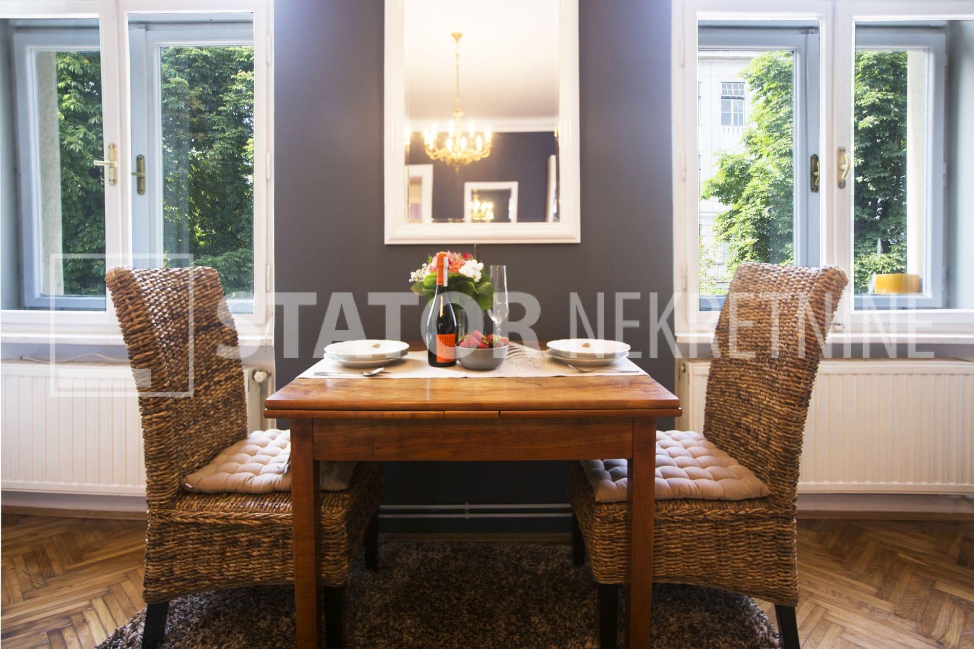 Nedaleko Petrove ulice iznajmljuje se odlično uređeni dvosobni stan na prvom katu. Sastoji se od ulaznog prostora, na lijevo dnevnog boravka sa prostorom za blagovanje i kuhinje. Desno od ulaza je spavaća soba s kupaonicom i odvojeni WC. Grijanje je etažno plinsko, klima. Stan je u potpunosti adaptiran 2020 ( novi prozori, podovi, keramika, uređena unutarnja stolarija).