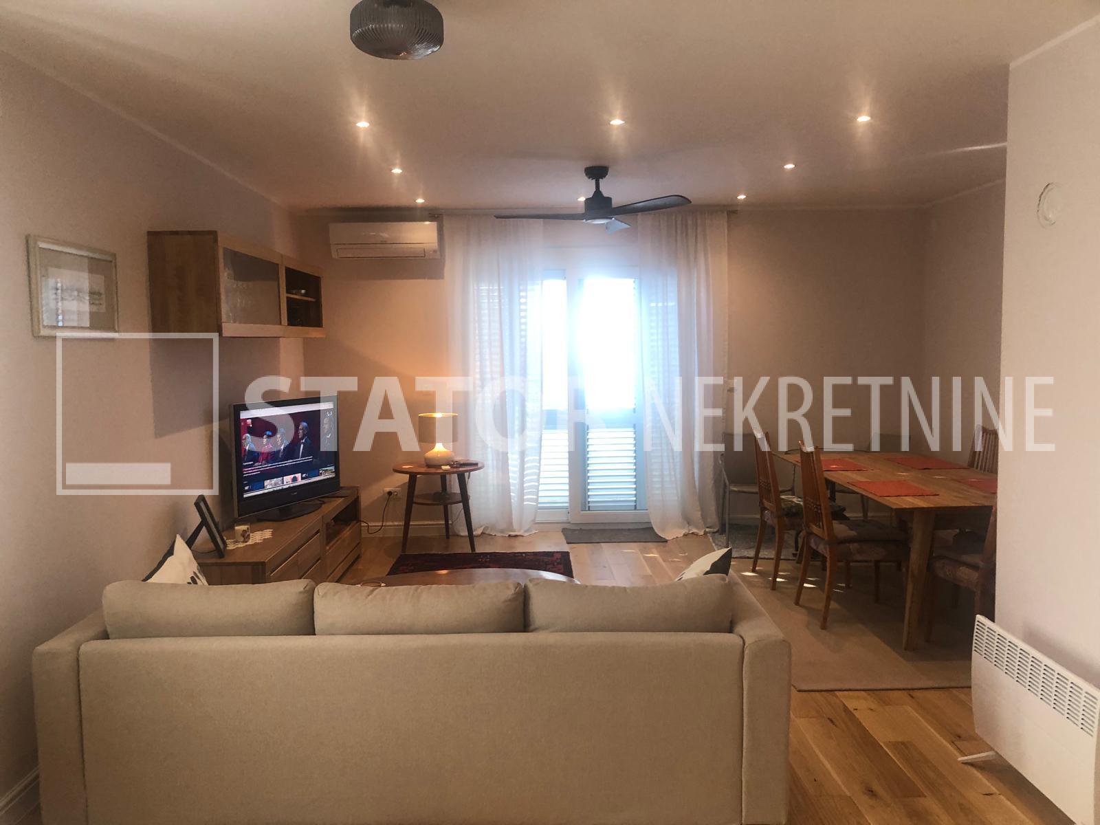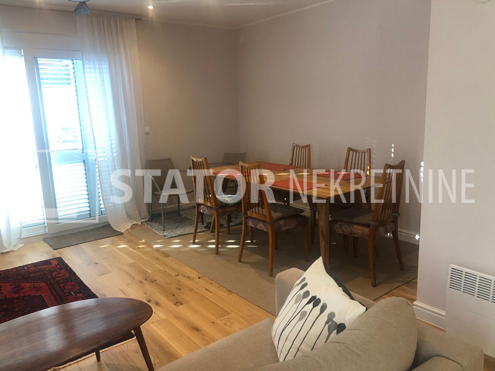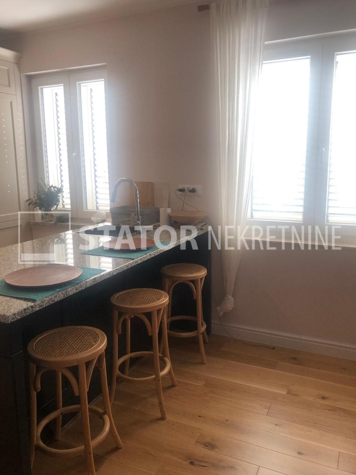 Prodaje se  uređeni i namješteni četverosobni stan u u obiteljskoj kući sa još tri stana, ETAŽIRANO!! Sastoji od 3 spavaće sobe, open space kuhinje, blagovaonice, dnevnog boravka, prostrane kupaonice i dodatnog WC – a. Stan je kompletno kvalitetno  uređen; postavljene su nove vodovodne i električne instalacije,